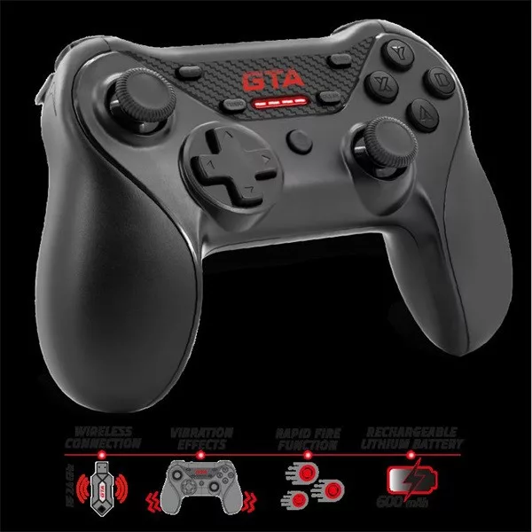 Advance Gamepad Vezeték Nélküli - GTA Gamepad (USB, 12 gomb, PC és PS3 kompatibilis, fekete-piros)