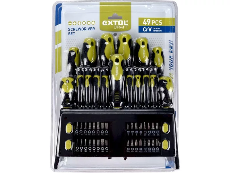 EXTOL® Craft 49db-os csavarhúzó készlet műanyag tartóállvánnyal (53146) részletes leírása
