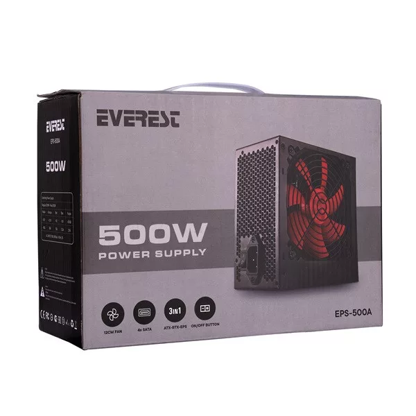 Everest 500W Desktop Tápegység, 12cm ventilátor, Regular 500W, Peak 550W, PC tápkábellel (EPS-500A) részletes leírása