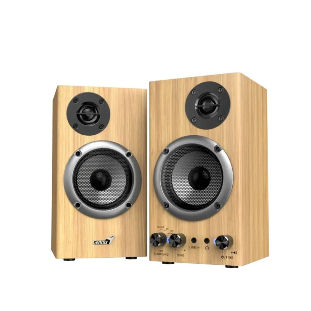 A Genius SP-HF520BT Bluetooth hangfal szett ötvözi a klasszikus fa dizájnt és a modern vezeték nélküli technológiát. A két darab hangfal letisztult megjelenésével bármilyen környezetben jól mutat, miközben erőteljes és tiszta sztereó hangzást nyújt.