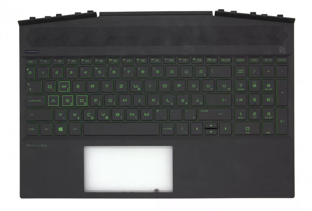 HP Pavilion Gaming - 15-dk000 sorozathoz gyári új magyar fekete-zöld fém háttér-világításos billentyűzet modul (L57593-211)