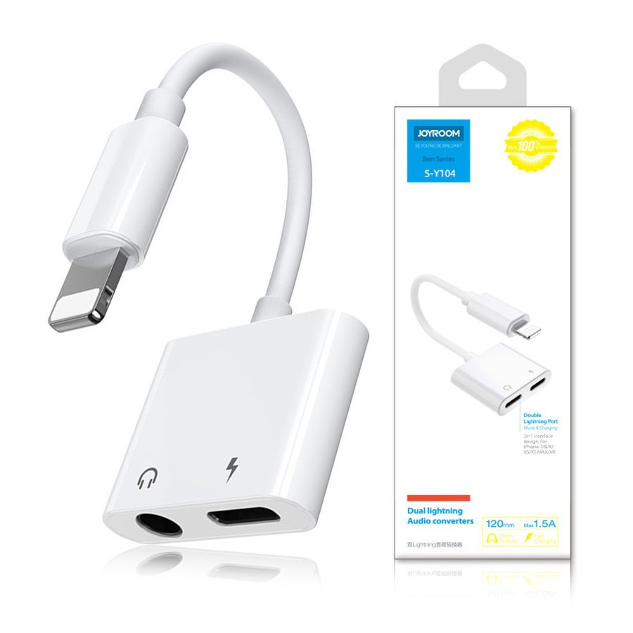 Joyroom Lightning Elosztó, Splitter- 1xx Lightning bemenettel illetve 1x 3.5 mm mini jack, fejhallgatóhoz és töltőhöz is egyszerre, fehér (S-Y104)