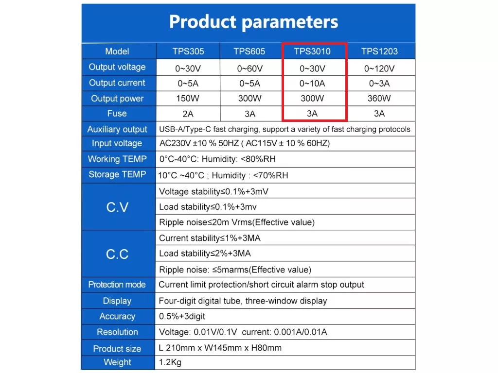Wanptek TPS3010 Szabályozható Laboratóriumi Kapcsolóüzemű Tápegység, Labortáp — 0-30V / 0-10A, 300W részletes leírása